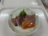 脂のたっぷりのったブリをお刺身して、昼食に提供しました